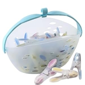 This Clothes Pins Soft Grip XL -36-Pack Clothespins & Hanging Basket - Moerman #88339 is made of a unique transparent plastic that is not only attractive but is also lightweight and super strong. The ergonomic clothes pins have a soft grips that easily open the pin. The gripping part of the pin is lined with anti-slip material which not only gives you a great grip on your clothing, but also does not leave that nasty dent on your clothes. These pins come in a mixture of pink blue and yellow pastel to add color to your chores. The carry basket is very smartly designed including a hook in the handle so you can hang it on your washline. It has drainage holes all around and even in the bottom, so that water does not sit in the basket when it rains. It comes loaded with 36 pins, but you can easily store another 12 pins in it. In this day of ever-rising energy bills and ever-rising awareness of our environment, going green and hanging your laundry could not be easier or more fun with this basket and clothes pin set.Moerman Americas brings color and style into your normally drab laundry day. This Belgium-based company is committed to providing innovative and eco-friendly solutions for your household laundry care. Have fun and enjoy your laundry chores!Size: 26 Pins:3.25L x Opens 1 Inch - Basket:9.5L x 5W Inches -- Color: Blue, Yellow & Pink