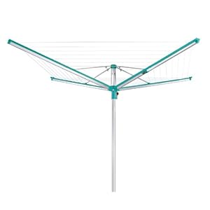 The Linomatic 500 deluxe rotary dryer is perfect for a large family, 164-feet of drying space . Clean, dry lines at any time thanks to the Leifheit line retraction. A press button on the carrying arm will ensure easy unlocking. Dirty lines that leave unpleasant stripes, as with conventional rotary dryers, are a thing of the past. Thanks to the proven line retraction mechanism the lines vanish into the dirt protected carrying arms. On each carrying arm are two hooks to dry eight shirts and blouses on coat hangers, free of folds. Enough space for large laundry like bed linen and tablecloths. All materials are weatherproof and UV resistant. Includes screw-in ground peg with lid. 3 year warranty.